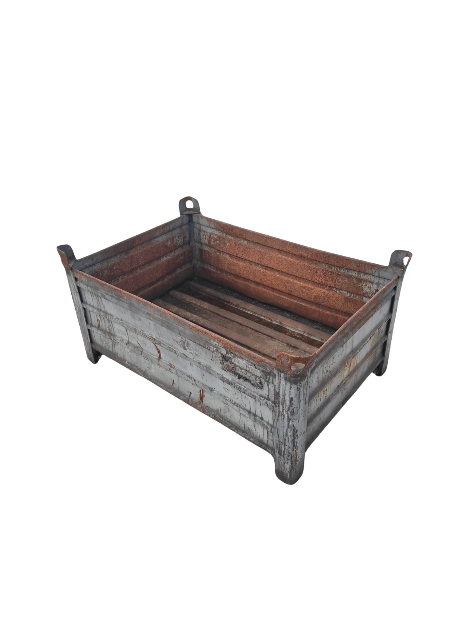 Sa structure entièrement en acier, avec parois pleines et fond renforcé, assure une excellente résistance dans le temps, même en conditions intensives. Les 4 pieds avec passages de fourches permettent une manipulation facile au chariot élévateur, tandis que les anneaux de levage facilitent les opérations de manutention.